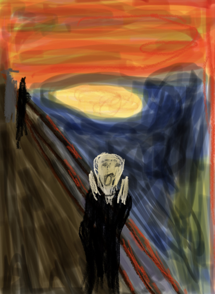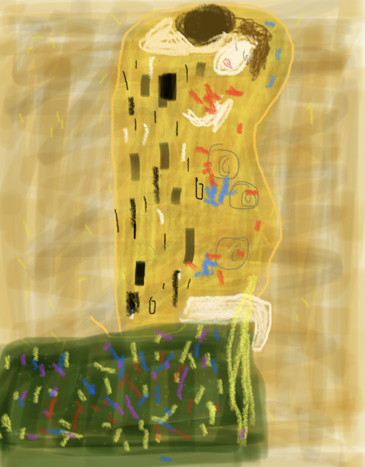 Die Notizenfunktion meines Smartphones bietet mir die optimale Oberfläche für eine Kreativbehandlung mittels Wurstfinger. So male ich gerne real existierende Kunstwerke – ganz egal, ob ich sie optisch ansprechend finde oder nicht – mit dem viel zu dicken Zeigefinger auf dem kleinen Handybildschirm nach. Dabei werden die Kunstwerke natürlich zwangsläufig auf ihre Grundessenzen reduziert, wie Bildaufteilung, Form, Farbe, Schatten und Lichter. Dennoch reichen scheinbar wenige Wurstfingerstriche aus, um einen gewissen Wiedererkennungswert zu erreichen.